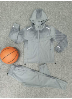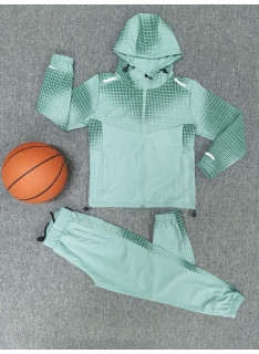 Deze sportset voor het kind onderscheidt zich door zijn Modern ontwerp met grafische patronen, ideaal voor een stedelijke, dynamische en trendy look. Het bestaat uit een Ritssluiting met een kap en een Bijpassende broek, ontworpen om comfort, weerstand en bewegingsvrijheid aan te bieden.