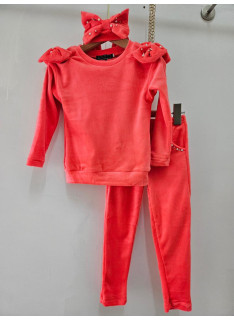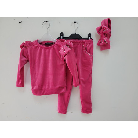 Set van 6: 3-kamer fluwelen meisje set - zweet, broek en diverse hoofdband