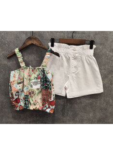 Top: Een topstijl "Crop" met brede en gefrituurde riemen. Het heeft een prachtige patchwork-print gemengd met kasjmierpatronen (Paisley) en bloemen in veelkleurige tonen. De onderkant van de bovenkant is elastisch voor een zeer trendy gezwollen effect.