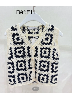 Model werkte in oma vierkanten met bloemen of geometrische patronen volgens referenties. Gekoppelde sluiting aan de voorkant, Wolk Crochet Edge Finish.