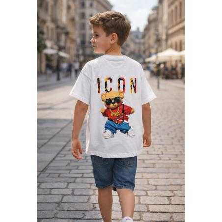 Jongens T-shirt met korte mouwen en ICON print op de achterkant. Het moderne en trendy ontwerp geeft een urban touch aan kinderkleding collecties.