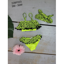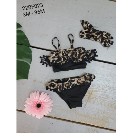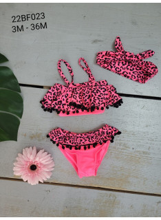 Trendy meisjes bikini met opvallende roze luipaardprint en speelse ruches.